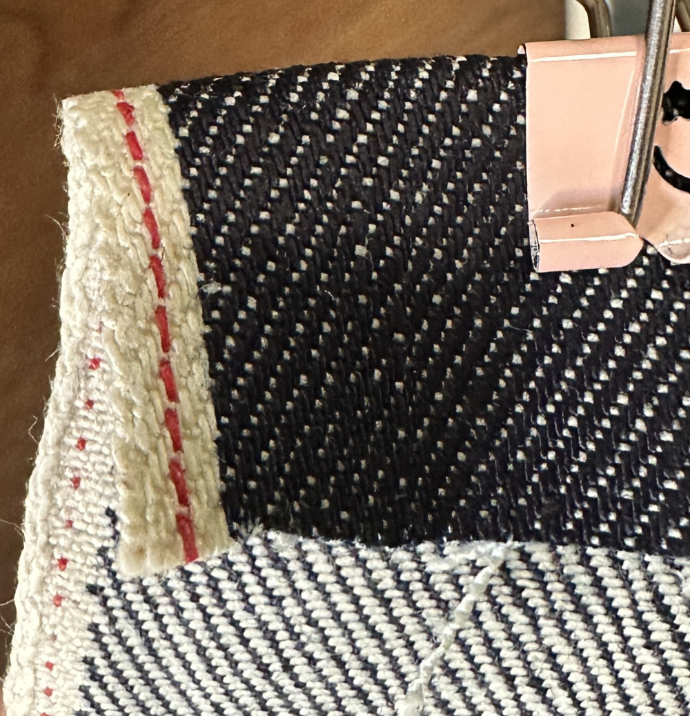 シャツやジャケットを意識した広巾のセルビッチデニムです。