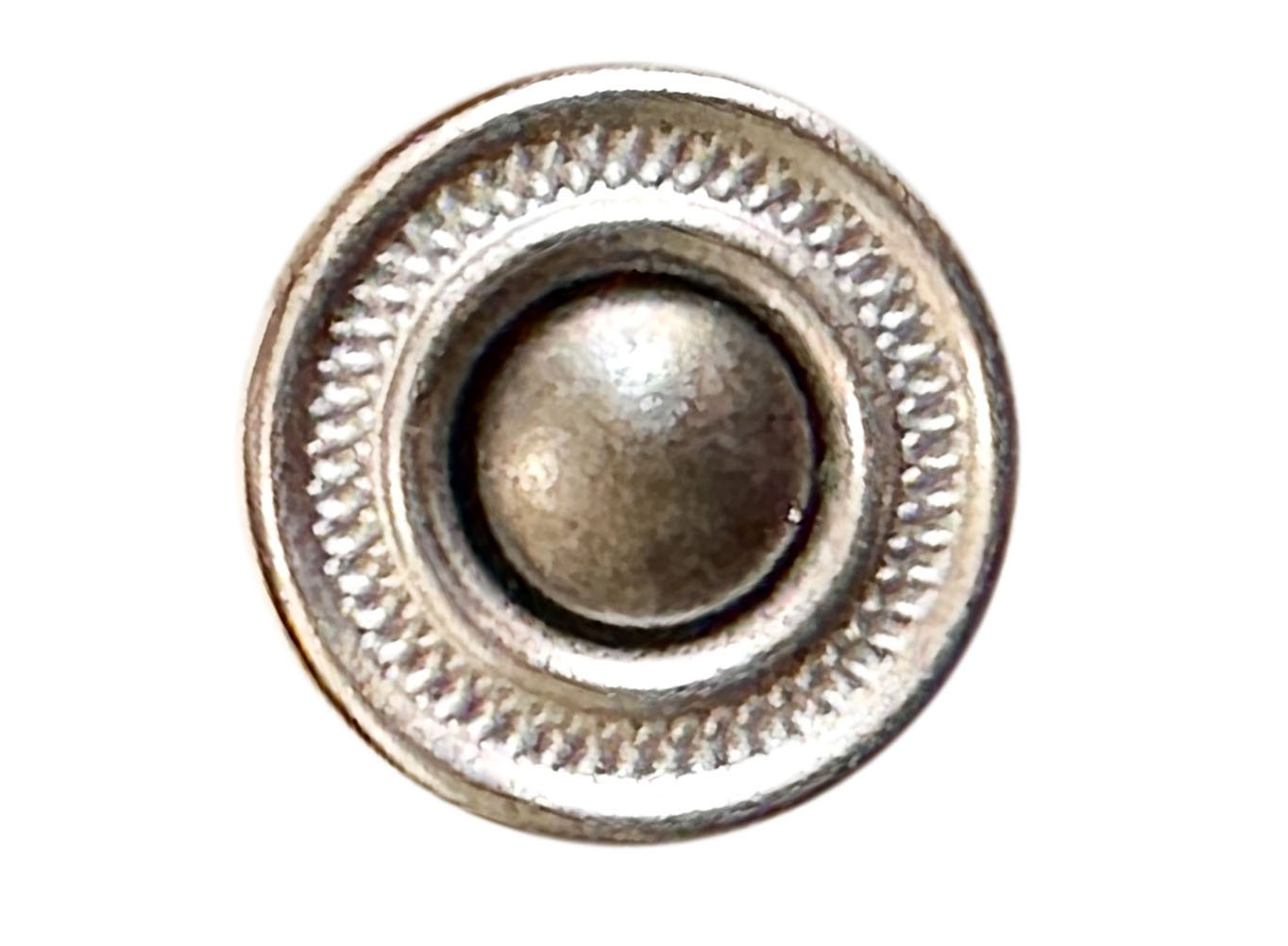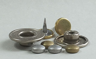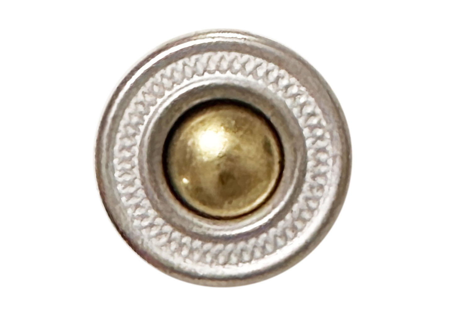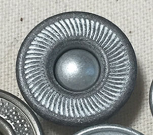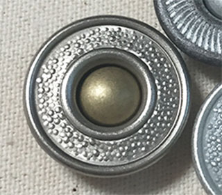そのようなボタンの考案の原点はおそらく「リベットのようにボタンを打ち付ける」です。F-RIMボタンはその初期の仕様に非常に近く、正にリベットを使ってボタンを留めるスタイルです。