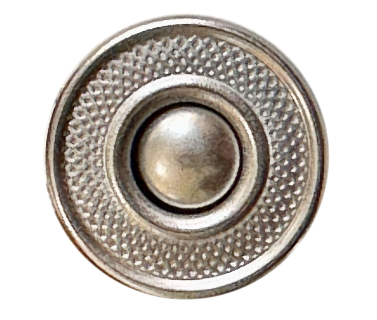 このボタンは鉄製です。メッキとニス処理をしていませんので環境によっては錆が早くつきます。