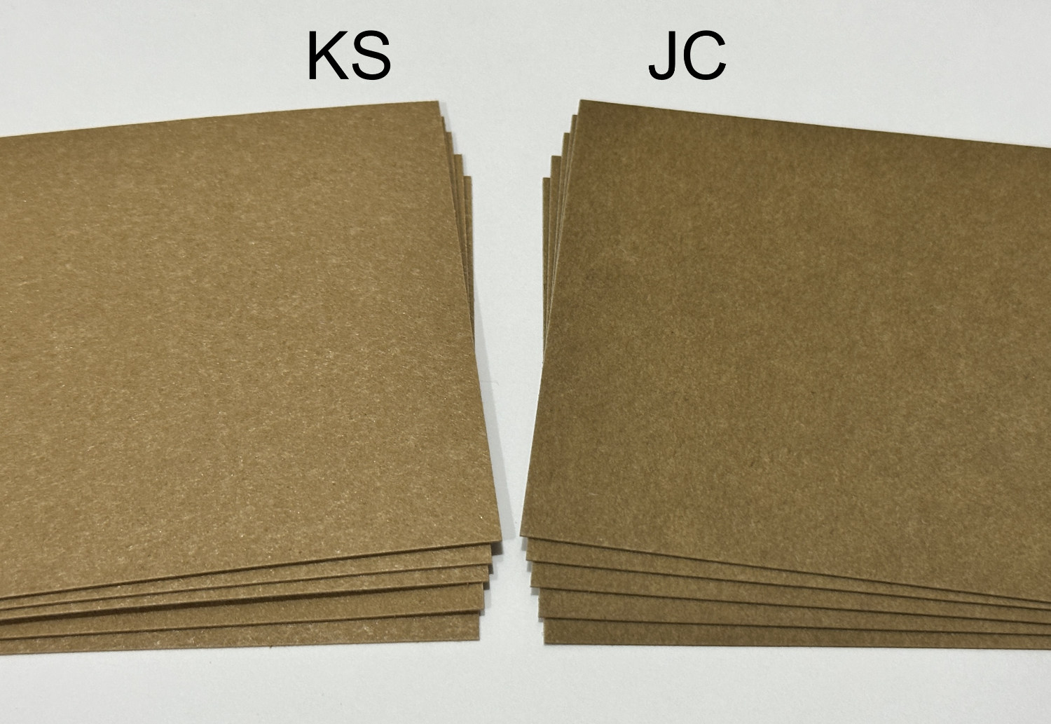 KSはJCよりも若干明るいトーンですが、それほど印象は変わりません。一番の違いは厚みで、KSはJCよりも2割程度薄く柔軟性があります。あまり重くないデニム、小物類にはKSがお勧めです。また手触りはコーティング感がありモダンな雰囲気です。JCはそれと比較して紙っぽさがあります。