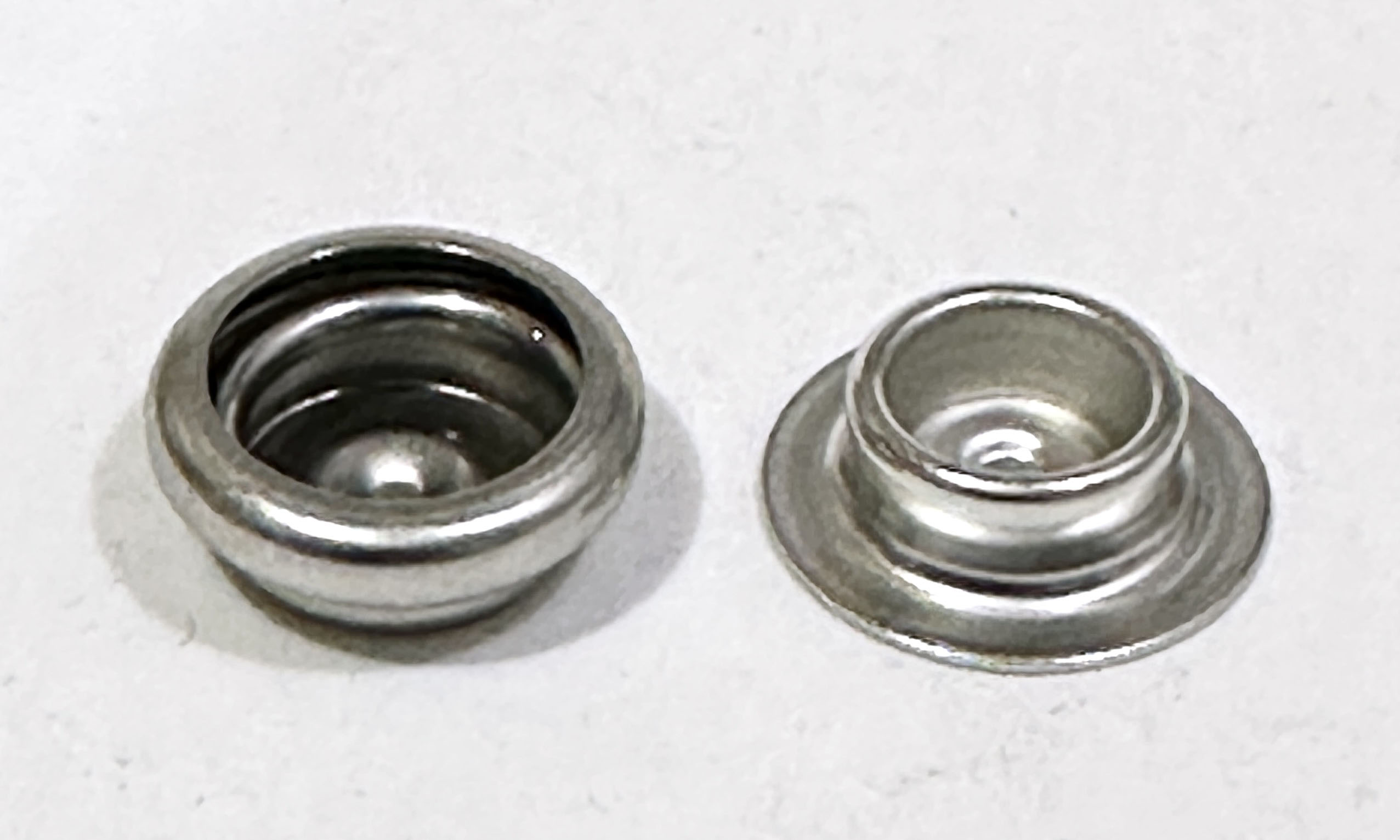 スナップはピンが付くパーツを下側にして打つ事が通常です。そのためジャケット等の前側は裏地側を上むきにします。ご注意ください。